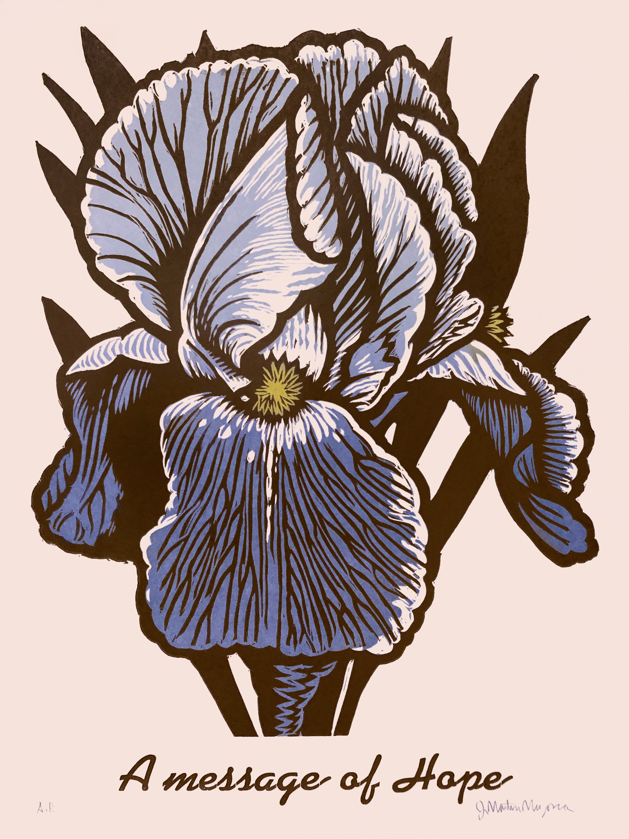Woodcut and Letterpress on paper. 18" x 24". Signed on the front. Unframed.