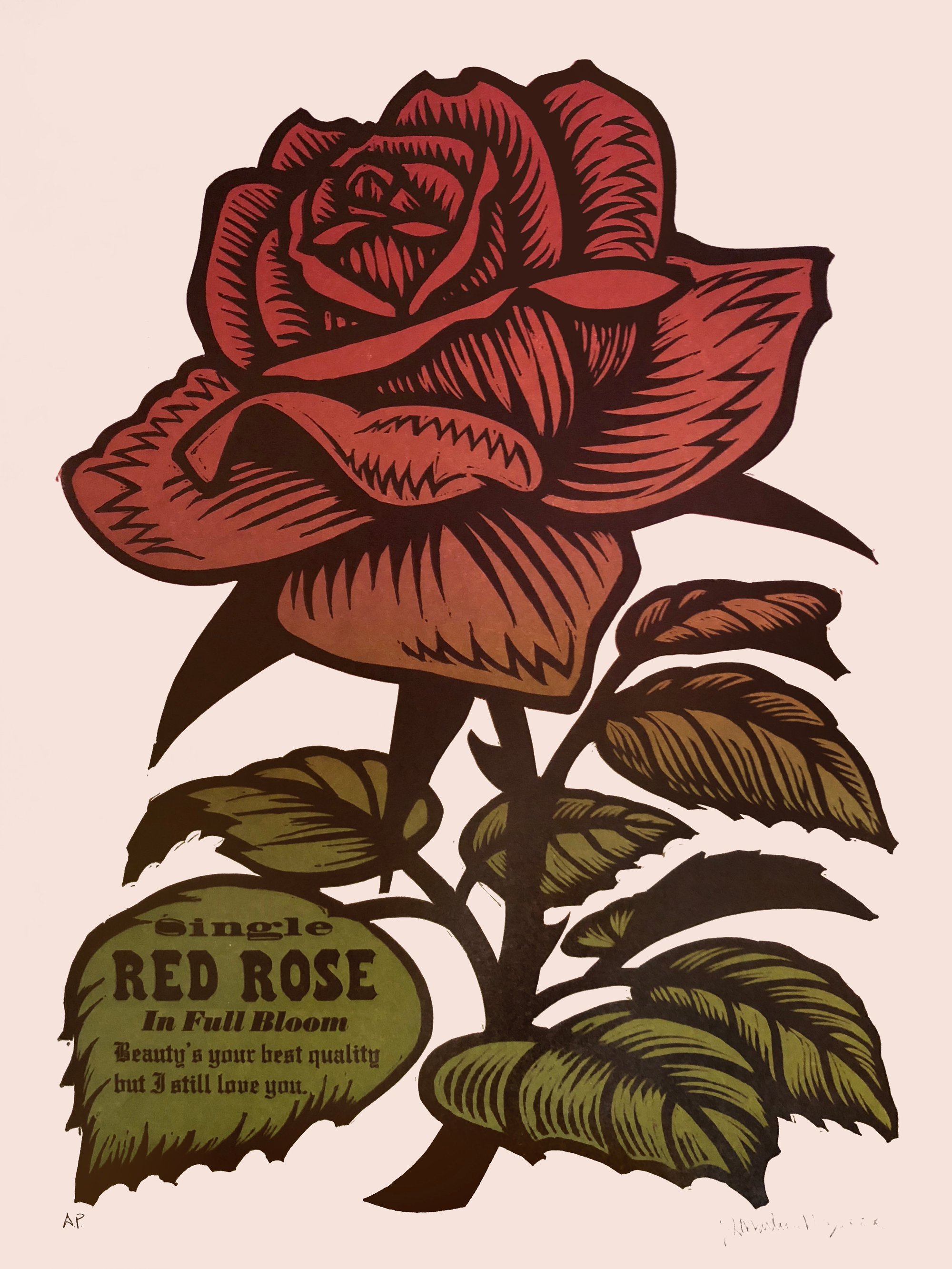 Woodcut and Letterpress on French's Insulation Pink paper. 18" x 24". Edition of 20. Signed on the front. Unframed.