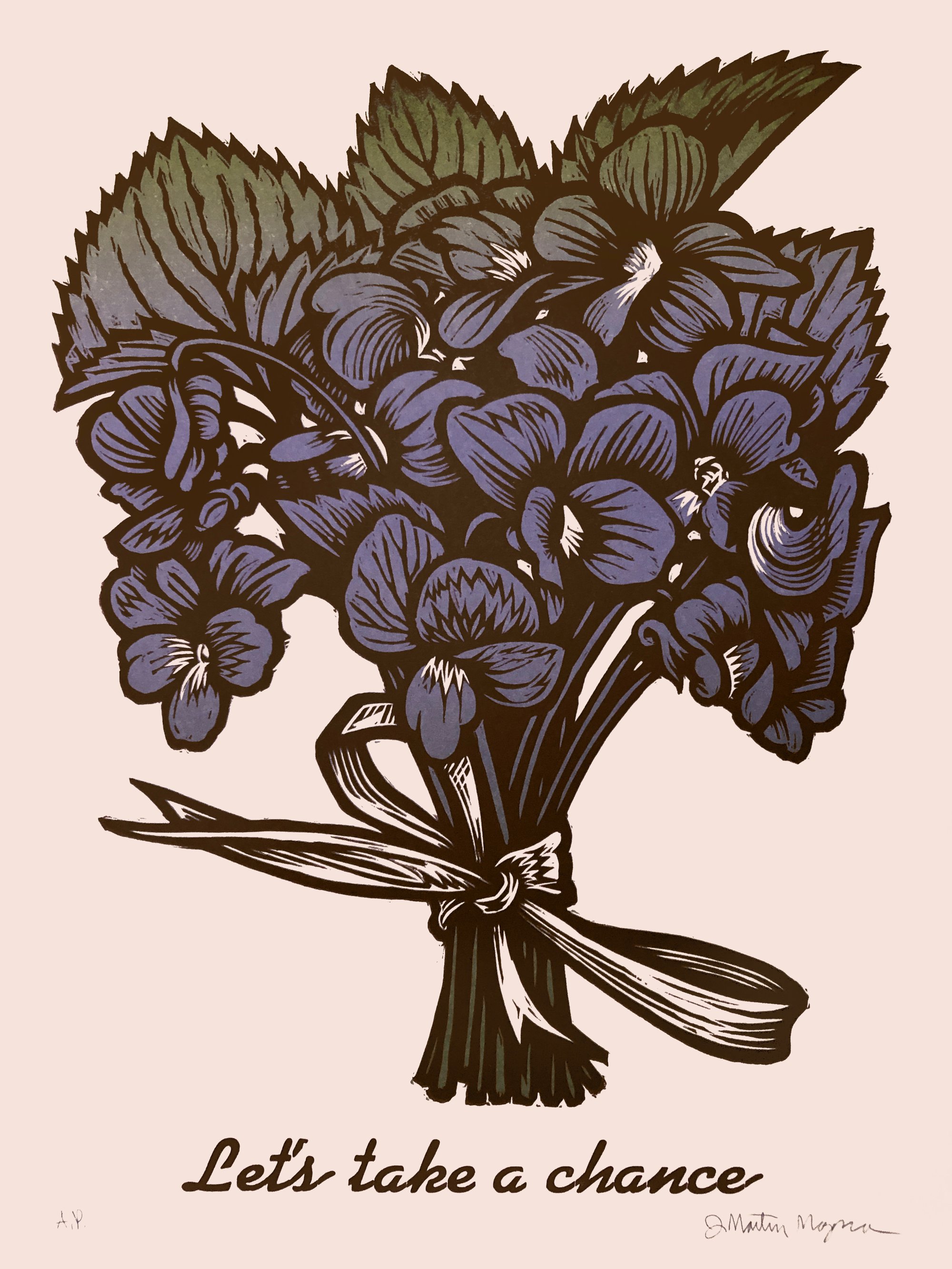 Woodcut and Letterpress on French's Insulation Pink paper. 18" x 24". Edition of 20. Signed on the front. Unframed.